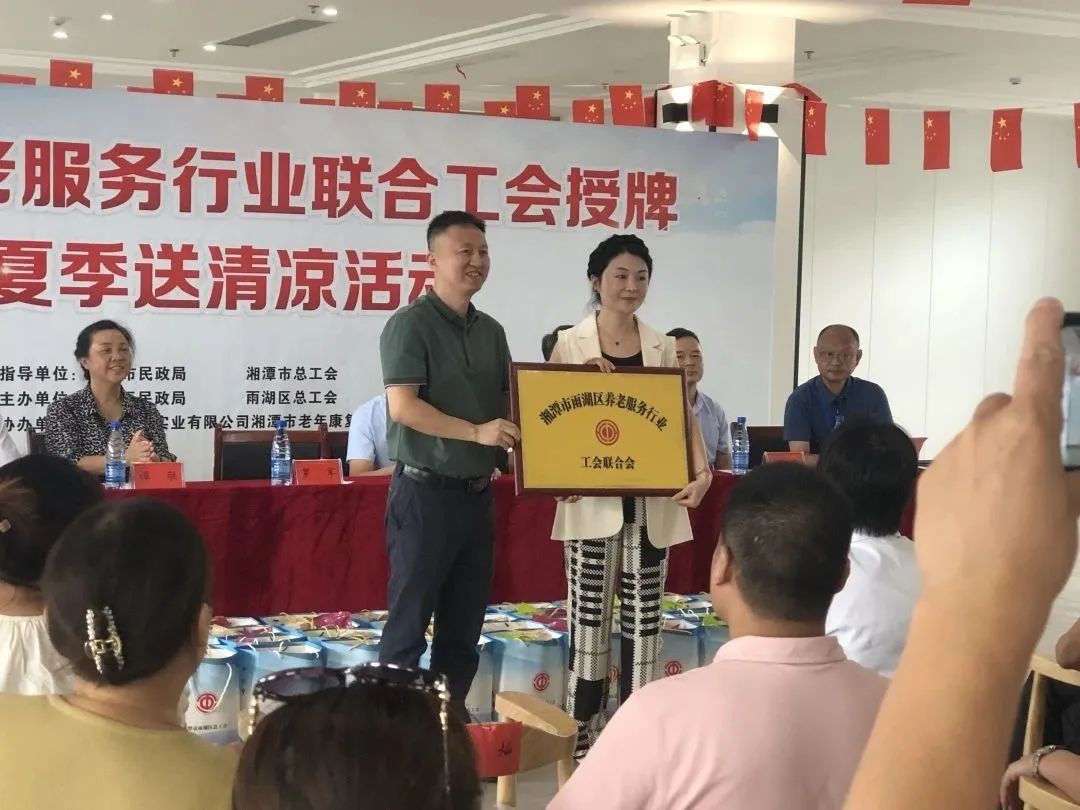 雨湖區(qū)養(yǎng)老服務行業(yè)聯(lián)合工會舉行授牌儀式,華遠康養(yǎng)中心法人譚燦任工會主席